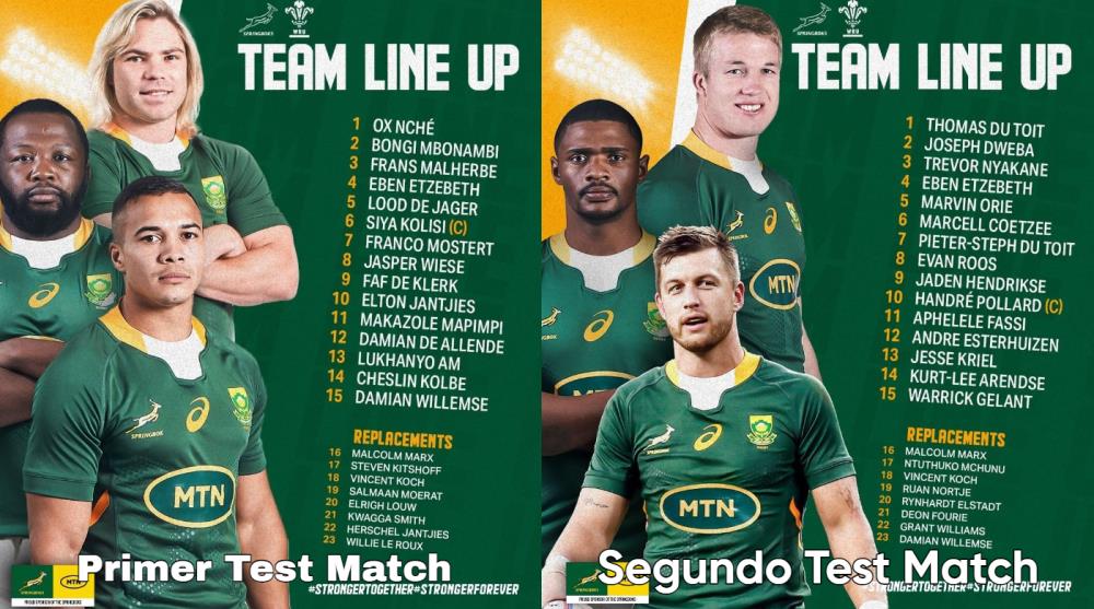 Además, el experimentado apertura campeón del Mundo en 2019, Handre Pollard, regresa a los Springboks luego de no participar en la primera prueba, asumirá la capitanía de Siya Kolisi esta fin de semana.