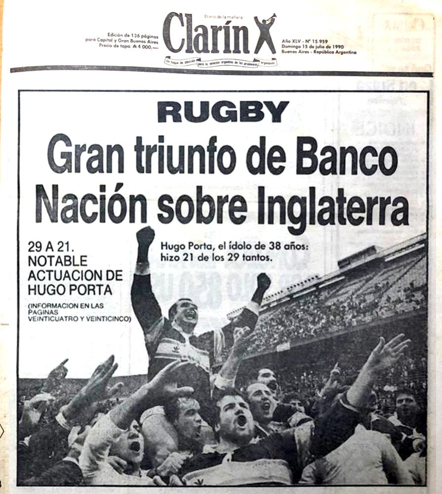 Aquél domingo los argentinos amanecían viendo en los titulares de los principales diarios una noticia fuera de lo común. El día anterior, 14 de Julio de 1990, en el estadio de Vélez Sarsfield ante 15 mil personas y capitaneado por el gran Hugo Porta, el Club Atlético Banco Nación derrotaba por 29 a 21 al seleccionado de Inglaterra. Sin dudas no fue un día más para el rugby argentino, ni tampoco lo sería para el rugby de Banco.