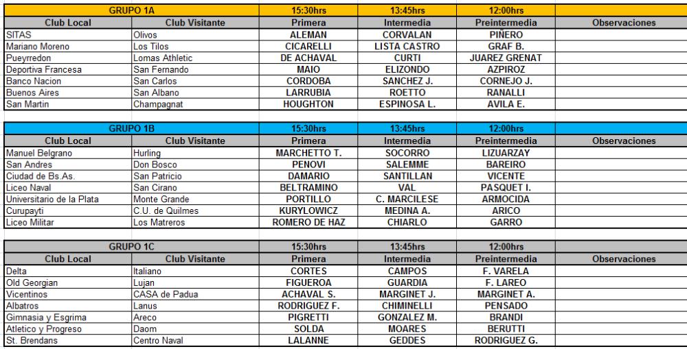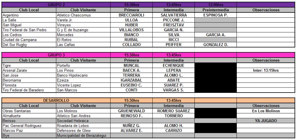 Galería de Imagenes Fueron designados los árbitros para los encuentros de Primera, Segunda y Tercera División, y Desarrollo, que se disputarán este sábado 19 de octubre. A continuación, Rugby Champagne te brinda todas las designaciones arbitrales para dichos encuentros. Fotógrafo: Ángel Pini - Rugby Champagne. Fuente: Gentileza Prensa URBA. Galería de Imagenes
