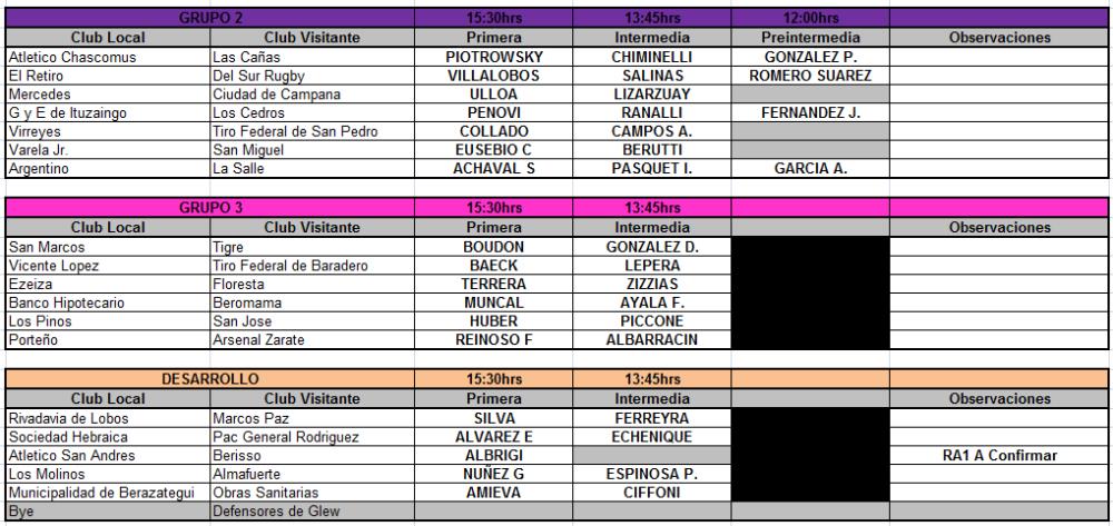 Galería de Imagenes Fueron designados los árbitros para los encuentros de Primera, Segunda y Tercera División, y Desarrollo, que se disputarán este sábado 26 de octubre. A continuación, Rugby Champagne te brinda todas las designaciones arbitrales para dichos encuentros. Fotógrafo: Ángel Pini - Rugby Champagne. Fuente: Prensa URBA. Galería de Imagenes