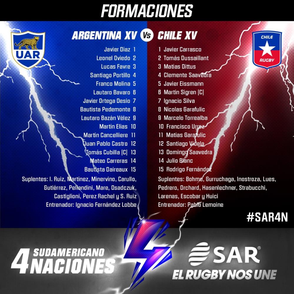 El Head Coach de Argentina XV, Ignacio Fernández Lobbe, confirmó el equipo que debutará ante Chile en el estadio Charrúa de Montevideo, el próximo sábado 17 de octubre desde las 16 horas, correspondiente al 4 Naciones organizado por Sudamérica Rugby. El conjunto nacional no disputa un encuentro oficial desde el 16 de junio de 2019, cuando cayó derrotado 28-15 ante Uruguay, por la Nations Cup.