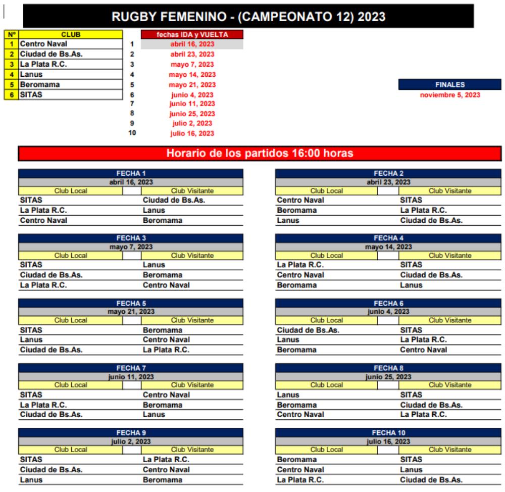 Galería de Imagenes Casi a pedido... este mediodía se sorteó el fixture del rugby femenino las chicas al menos ya saben cuando empiezan sus torneos y contra quienes jugarán. El Ten a Side comenzará el 2 de Abril, mientras que el Campeonato 12 verá inicio el 16 del mismo mes. Ambos terminarán el 16 de Julio y todavía no es concreto como seguirá el torneo después de eso. La novedad es Beromama, que debutará jugando el Campeonato de 12 jugadoras, un logro para un equipo que recién comenzará a jugar este año. Galería de Imagenes