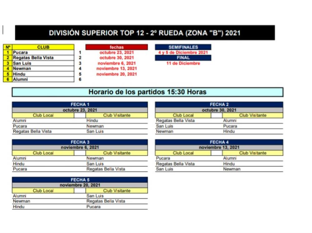 Galería de Imagenes La máxima categoría tendrá su segunda fase y repasamos que equipos integrarán cada zona. En la Zona A se encuentran SIC, CUBA, Belgrano Athletic, CASI, Los Tilos y Buenos Aires, mientras que la Zona B quedó conformada por Newman, Hindú, Alumni, Pucará, Regatas y San Luis.El próximo fin de semana se comenzará a disputar la segunda ronda de la máxima categoría, en busca de los semifinalistas.Acá te dejamos el fixture: Fotógrafo: Fede Lemos (@torcua_photo), Rugby Champagne. Galería de Imagenes