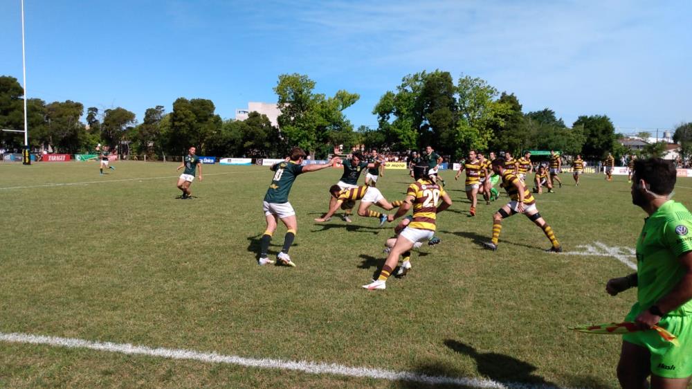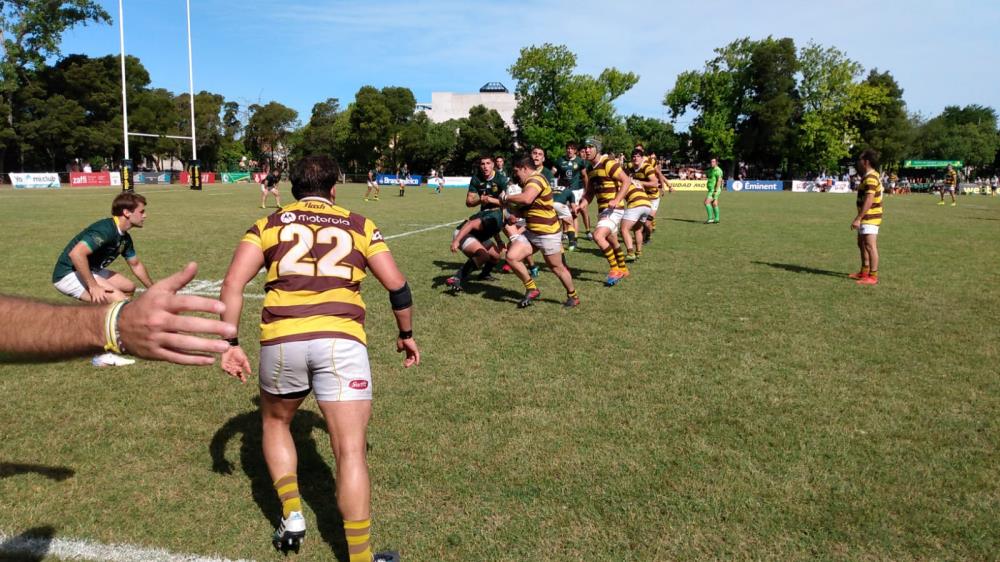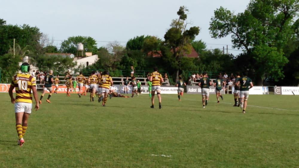 En su primer acercamiento a la meta rival, Los Tilos igualó en 5 a los 15 minutos con la potencia de Bautista Gatti. Sin embargo, el Marrón volvió a tomar distancia con un penal de Rosati a los 21 minutos y un try de Fernández Criado a los 25 minutos, nuevamente imponiéndose en el contacto.