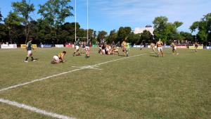 Los de Virrey del Pino se mostraron con mejor condición física en el complemento, y con el viento a sus espaldas culminaron su actuación arrolladora. A los 3 minutos ya empezó a sacar una ventaja importante, con un try de Agustín Rocca a la salida de un line (8 - 25).