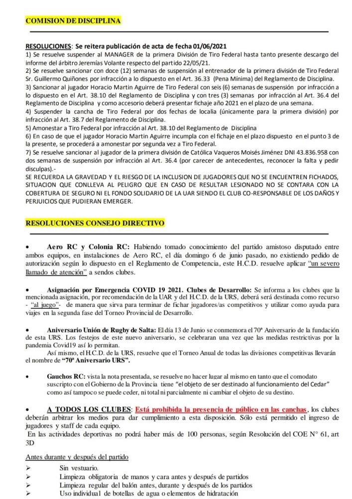 Galería de Imagenes En el documento se explicitan las resoluciones del Tribunal de Disciplina, las tarifas de los traspasos y la programación del Torneo Anual. Mira en la galería de imágenes el boletín completo: Fuente: Prensa URS Galería de Imagenes