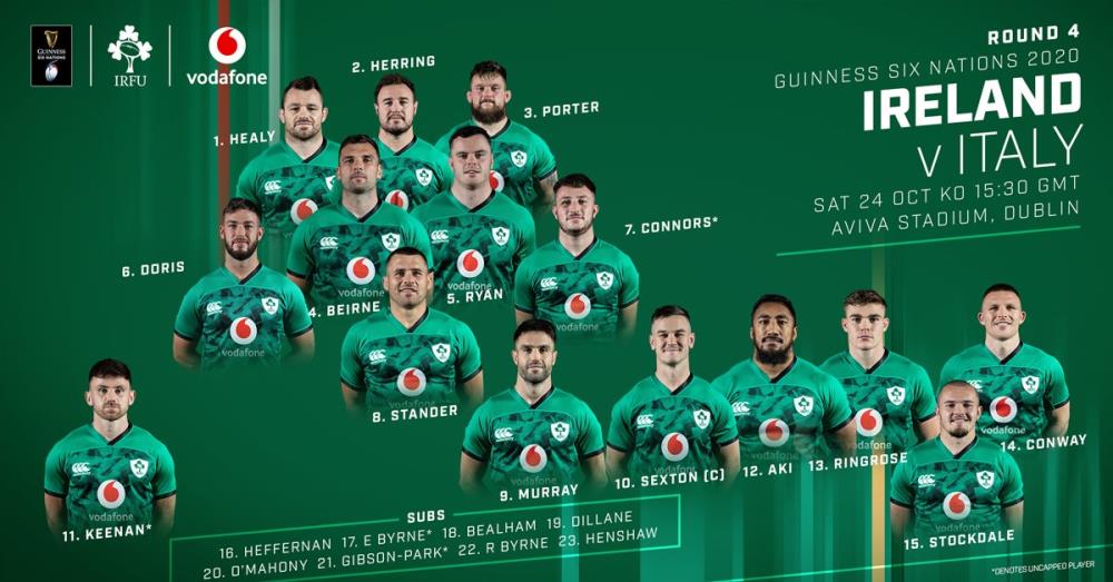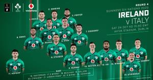 El equipo de Irlanda: Jimmy O'Brien, Jordan Larmour, James Hume, Bundee Aki (c), Keith Earls, Ciaran Frawley, Craig Casey, Gavin Coombes, Nick Timoney, Cian Prendergast, Kieran Treadwell, Joe McCarthy, Tom O'Toole, Dave Heffernan , Jeremy Loughman.
