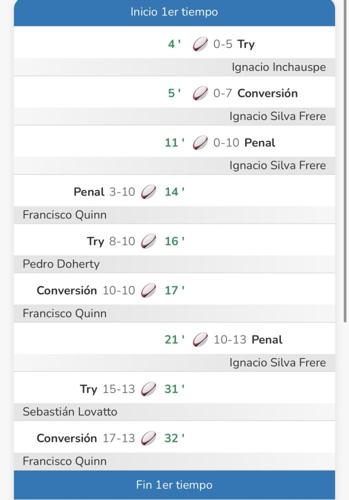 Rápidamente, el local tomó la posta del encuentro y respondió. Esta vez, Francisco Quinn fue el que tuvo la responsabilidad en su pie ante la salida del 15 inicial de Juan Parareda. Así fue que marcó el penal, y luego, Pedro Doherty llegó al ingoal y Quinn volvió a marcar.