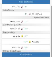 A partir de ahí, el partido se volvió con mucho roce y el árbitro decidió sancionar una tarjeta amarilla por lado, pero eso no bajó la intensidad y el local, tras una buena defensa, Patricio Braida Propato vió el espacio y se mandó para llegar por última vez al ingoal y así, conseguir un punto bonus clave.