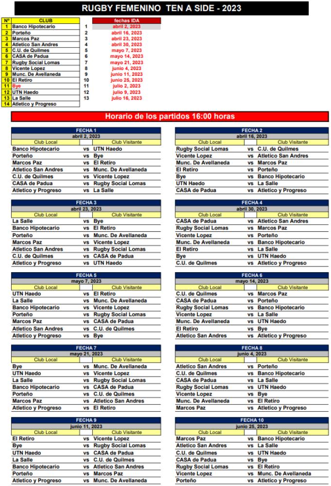 Galería de Imagenes Algunos equipos cambiaron de categoría debido a la menor cantidad de jugadoras en este 2023. Mirá el fixture del Campeonato 12 y del Ten a Side en la galería de imagenes: Galería de Imagenes