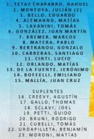 16- Creevy, 17- Gallo, 18- Sclavi, 19- Petti, 20- Bruni, 21- Cubelli, 22- Urdapilleta, 23- Moroni.