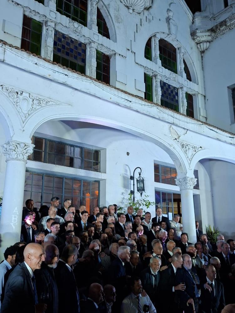 Con videos y felicitaciones de ex Pumas, como Juan Manuel Leguizamón y el "Chapa" Branca, la fiesta continuó por la noche, ya afuera de la cancha: hubo una entrada de picada en la terraza del salón con dos barras de canilla libre.
