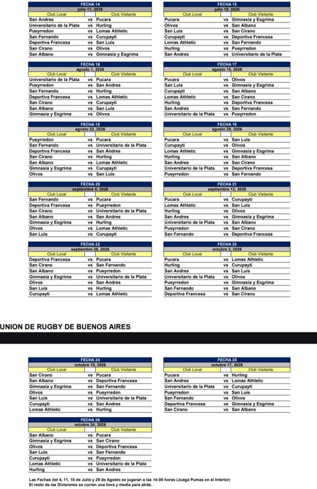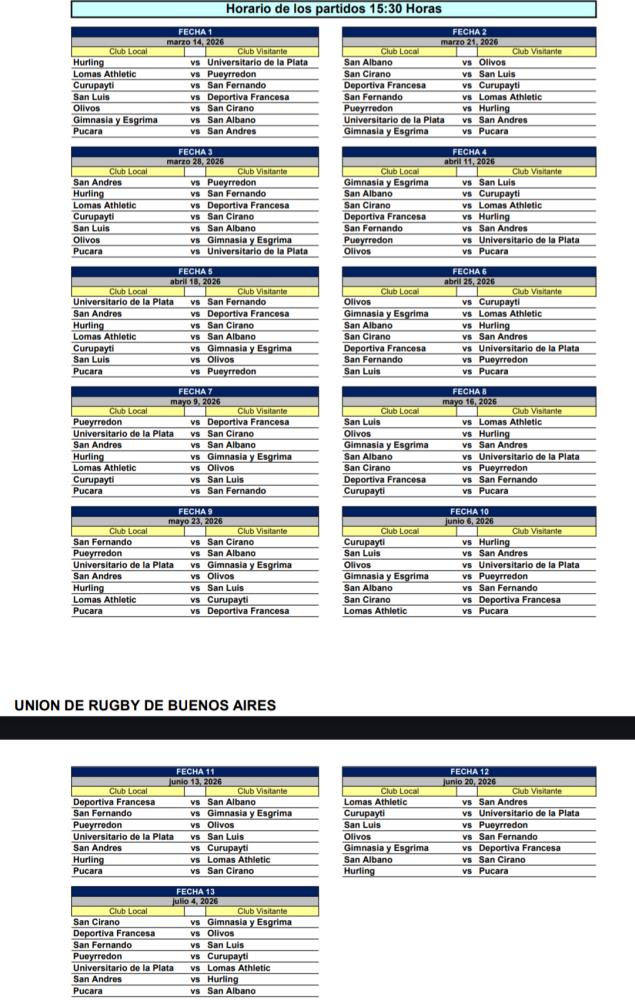 Galería de Imagenes Con grandes equipos que buscarán el ascenso a la máxima categoría, así se disputará en 2026 la Primera A. San Luis en su regreso recibirá en La Cumbre a Deportiva Francesa. El 14 de marzo será el inicio del campeonato y se extenderá hasta el 24 de octubre. Una semana después serán las semifinales, mientras que el 14 de noviembre será la final.El campeón del torneo atenderá directo al Top 14, mientras que del 2° al 5° jugarán semifinales. Los últimos dos de la tabla descenderán a Primera "B".GEBA, que llega como campeón, debutará ante San Albano. San Fernando, otro de los ascendidos, visitará a Curupaytí. Galería de Imagenes