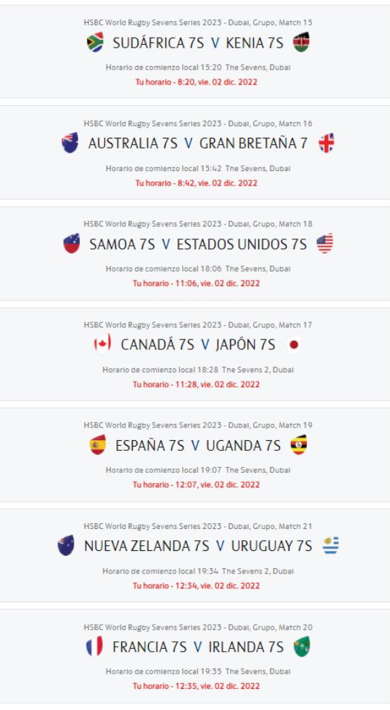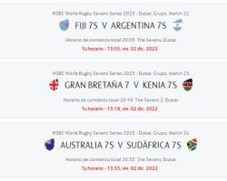 Este viernes iniciará el Seven de Dubai, con la particularidad de que se jugará solo en dos días. Primero, el viernes se disputará la fase de grupos y luego el sábado todos el resto de partidos. El seleccionado argentino comparte grupo con Nueva Zelanda, Uruguay y Fiji, rivales a los que enfrentará en ese orden.