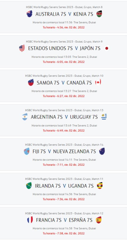 Por último, Argentina cierra su participación en fase de grupos ante Fiji, el mismo día a las 13:05 Hs. ya sabiendo el resultado de Nueva Zelanda Vs. Uruguay debido a que juegan a las 12:34.