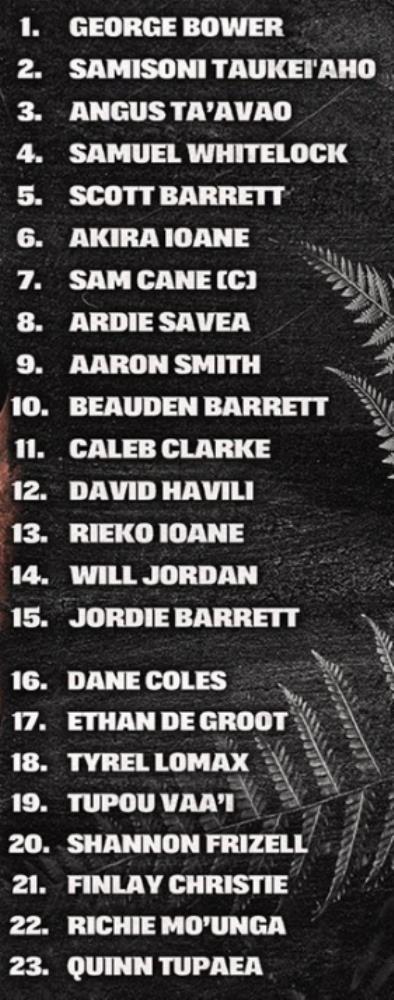 Samisoni Taukei'aho fue nombrado en el equipo desde el inicio como hooker, junto con el pilar derecho Angus Ta'avao. Las caras nuevas conforman la cobertura de la primera línea, con Tyrel Lomax y Ethan de Groot, convocados por primera vez en la temporada internacional de 2022.