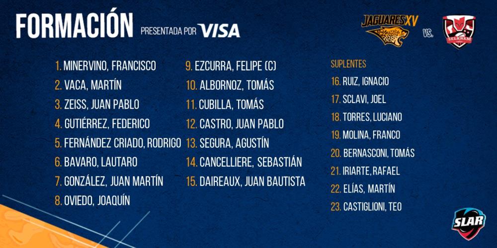 Avanzan las semanas en Montevideo y la Superliga Americana de Rugby comienza a definir los semifinalistas de la edición 2021, que tiene a Jaguares XV como puntero invicto y con formación confirmada para enfrentar a Selknam, este miércoles a las 18, en el estadio Charrúa, por la octava fecha. El partido será televisado por ESPN 3 y también se podrá seguir por ESPN Play.