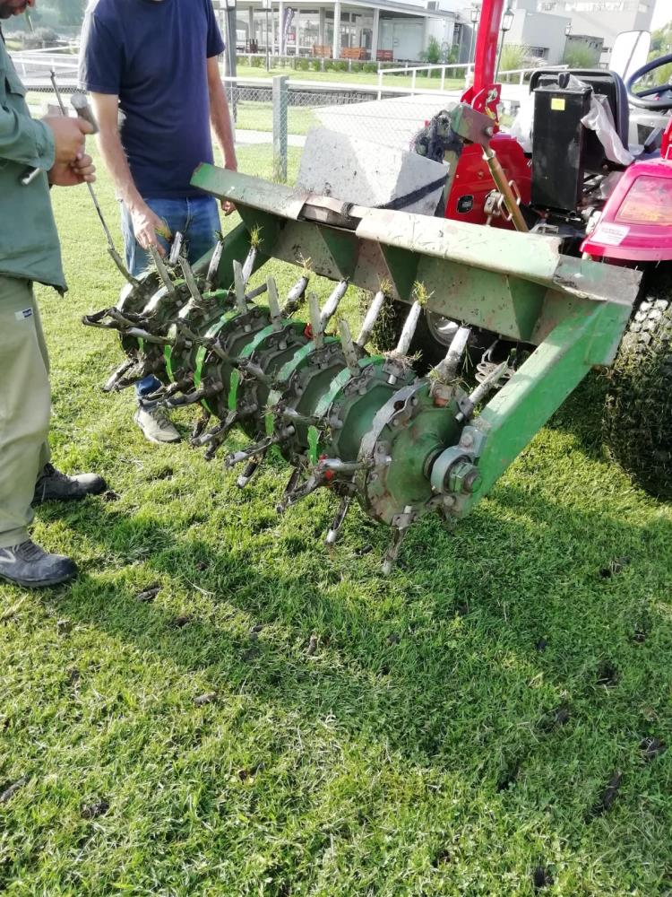 En medio de la charla para saber como y cuando iban a comenzar la preparación de cara al torneo de la URBA 2022, Sergio nos comentó que comenzaron los trabajos de aireación de suelo en las Canchas 1 y 2 como estaban programados, y entusiasmado continúa su relato; "este trabajo se denomina TOP DRESSING y consiste en agujerear el suelo con pequeños sacabocados para luego ser rellenados con arena".