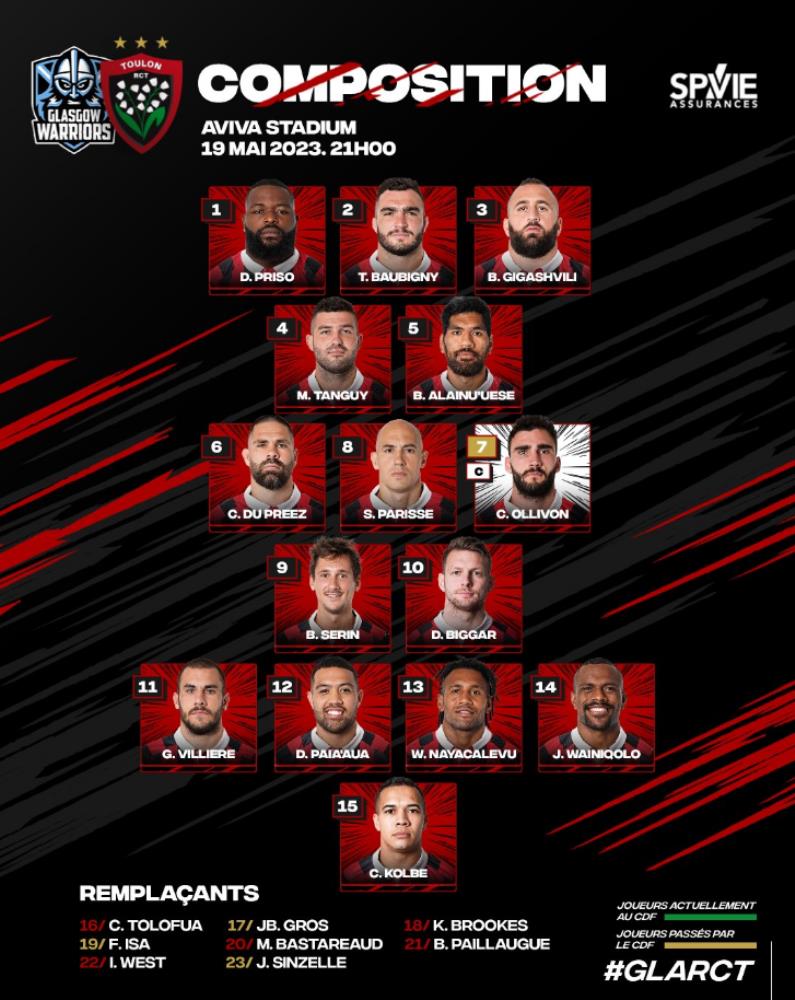 Galería de Imagenes El tercera línea argentino tendrá un lugar en el banco de suplentes en la final de la Challenge Cup este viernes. Toulon jugará la final de la Challenge Cup este viernes ante Glasgow Warriors en el Aviva Stadium de Dublin, Irlanda. Para dicho partido, Pierre Mignoni y Frank Azema decidieron dejar a Facundo Isa en el banco de suplentes para que tenga una oportunidad como 'Impact Player'.Se destaca la presencia de Sergio Parisse como octavo titular en la tercera línea junto con el francés Charles Ollivon y el sudafricano de 32 años Cornell Du Preez. El galés Dan Biggar jugará con la número 10, reemplazando al neozelandés Ihaia West, y formará pareja de medios con el experimentado Baptiste Serin.En una de las puntas veremos el regreso del habilidoso wing francés Gabin Villiere, quién estuvo fuera del campo debido a unas lesiones que no le permitieron jugar.La final: Toulon Vs. Galasgow WarriorsDía: Viernes 19/05/2023Hora: 16:00 Hs ArgentinaTV: ESPN Estadio: Aviva Stadium, Dublín Fuente: Bautista Terrera Galería de Imagenes