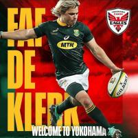Galería de Imagenes El medioscrum campeón del mundo con Sudáfrica en 2019 dejó Sale Sharks y la Premiership para continuar su carrera en el equipo asiático. El back nació el 19 de Octubre de 1991, pesa 88kg y mide 1.70, sumó 36 caps con los Springboks y se desempeño en los Lions, dónde jugó el Súper Rugby y en los Sales Sharks en InglaterraEn su llegada al equipo de Yokohama, Faf de Klerk comentó:"Estoy muy emocionado y agradecido por la oportunidad de ser parte de un gran equipo como Yokohama Canon Eagles. Desde la Copa Mundial de Rugby en 2019, supe que quería jugar en Japón en algún momento de mi carrera. Ahora es una realidad y no puedo esperar para quedarme atrapado con mis compañeros de equipo y entrenadores y espero tener un gran impacto. La cultura japonesa es increíble y espero disfrutar cada momento con mi pareja, compañeros de equipo y todos los fanáticos del rugby de Japón". Fuente: Brian Willcham Galería de Imagenes
