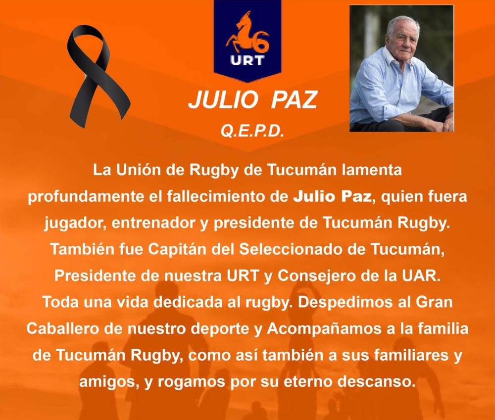 Luego de una extensa vida ligada al rugby, en donde fue jugador, dirigente y entrenador, Paz falleció a los 81 años.