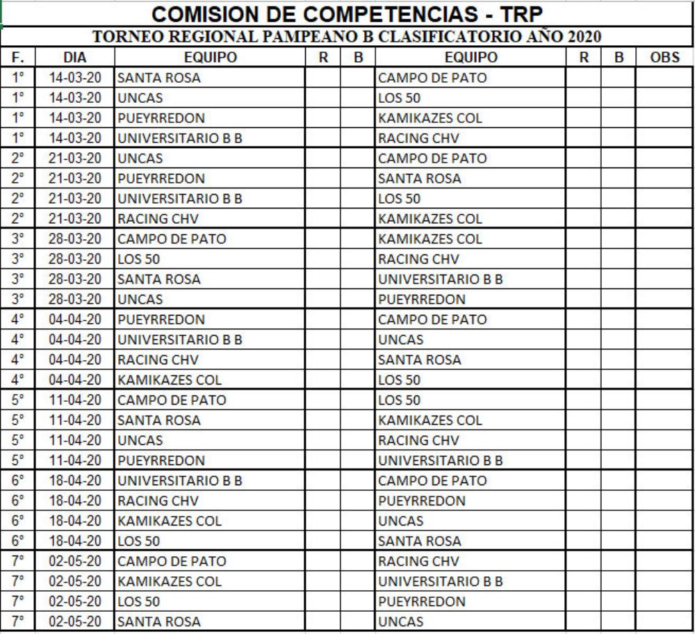 Fixture del Regional Pampeano 2020