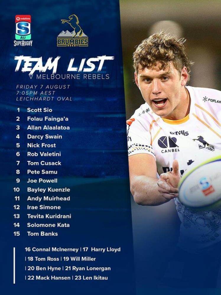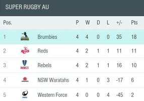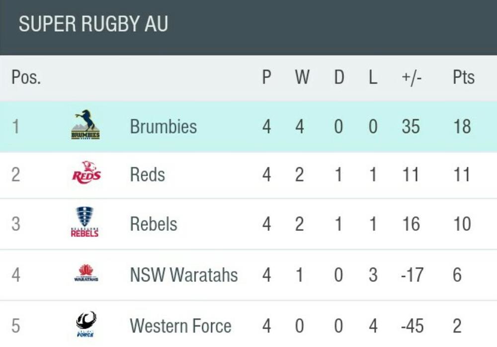 Galería de Imagenes Rebels enfrentará al líder Brumbies en el Leichhardt Oval del sur de Sidney y Waratahs recibirá a Reds, que necesita un triunfo para mantener vivo el campeonato. Matt To´omua dejará su puesto de apertura para ubicarse en el centro de la cancha y el apertura de Rebels en este caso será Andrew Deegan. Enfrente tendrá al conjunto de Canberra que se encuentra en la cima de la tabla de posiciones y continua invicto en el torneo. Una victoria del visitante y una posible derrota de Reds, comenzaría a sentenciar el certamen australiano. Por esta razón, los de Melbourne estarán visitando a Waratahs en Sidney con la obligación de ganar para mantener la esperanza de pelear por el título. Jordan Petaia será otra vez titular e intentará repetir la buena actuación que realizó la semana pasada en su vuelta a las canchas luego de una importante lesión. Por su parte, el local está en un año de recambio y eso lo refleja su posición en la tabla. Un triunfo para Michael Hooper y compañía sería importante para empezar a cerrar esta irregular temporada de la mejor manera.Acá te dejamos las formaciones de todos los equipos y la tabla de posiciones: Fotógrafo: rugby.com.au Galería de Imagenes