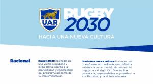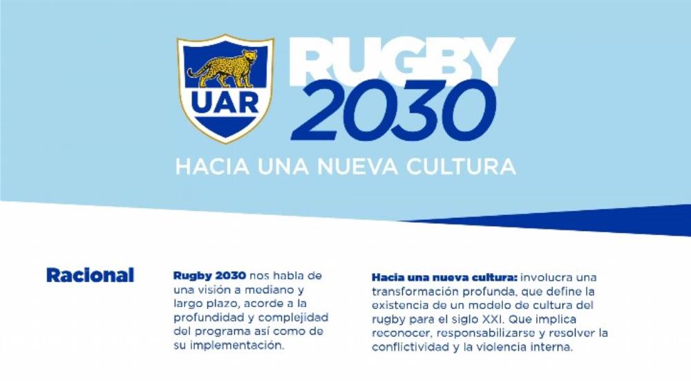 El inicio de este programa surge como resultado de un trabajo que inició la UAR a comienzos de este año en la búsqueda de que los clubes sean una herramienta fundamental a la hora de abordar los conflictos, especialmente entre los jóvenes y contribuir a erradicar la violencia de la comunidad del rugby. En febrero se constituyó una comisión permanente dedicada a trabajar el tema, se realizaron reuniones con la Secretaría de Deportes de la Nación, sponsors, medios de comunicación, otras federaciones deportivas y distintos actores intervinientes hasta concretar Rugby 2030.