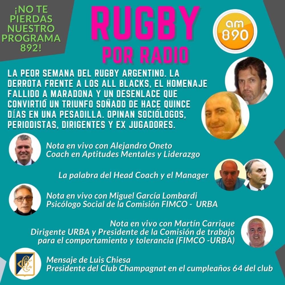 Habrá notas en vivo con Alejandro Oneto (Coach en Aptitudes Mentales y Liderazgo), con Miguel García Lombardi (Psicólogo Social de la COmisión FIMCO - URBA) y con Martín Carrique (Dirigente URBA y Presidente de la Comisión de Trabajo para el comportamiento y tolerancia).