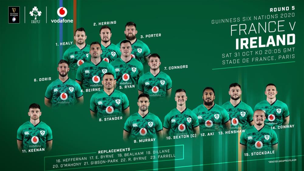 Irlanda se encuentra en la cima de la tabla de posiciones del torneo de las Seis Naciones, un punto por encima de Inglaterra y Francia. El conjunto irlandés viaja a la capital francesa sabiendo que una victoria con puntos bonus le garantizará el título. El pilar, Cian Healy, tendrá su partido internacional número 100 el sábado por la noche en París.