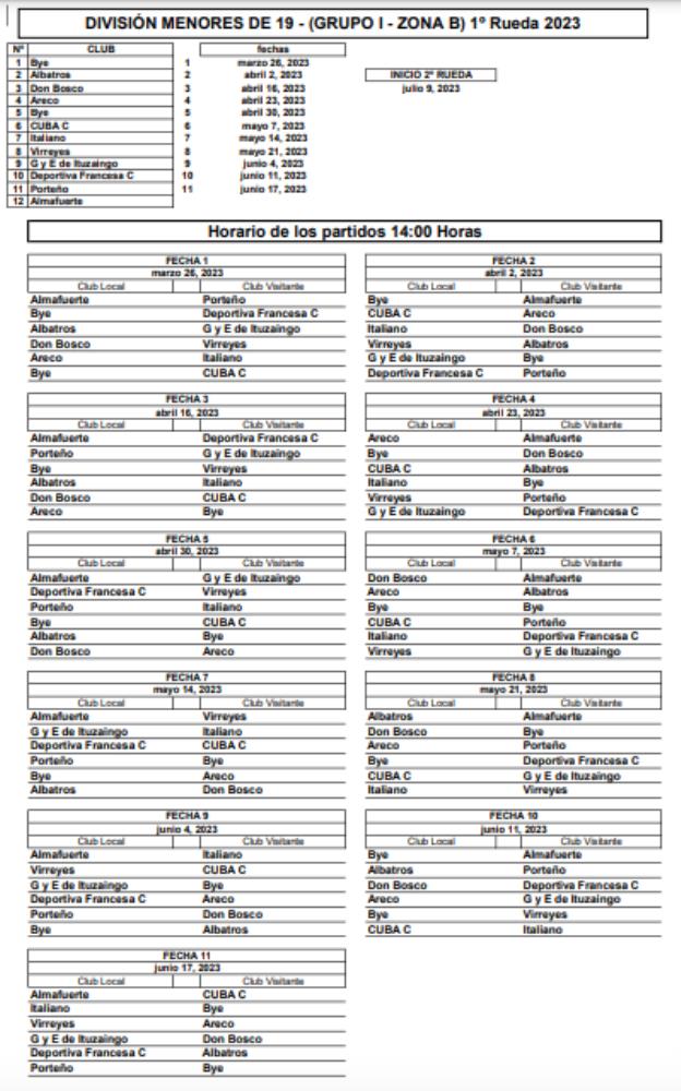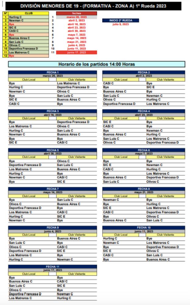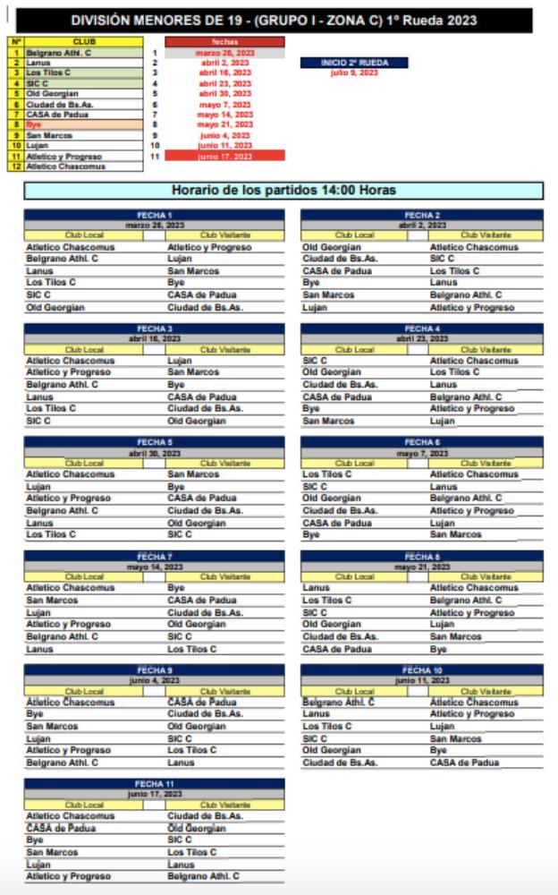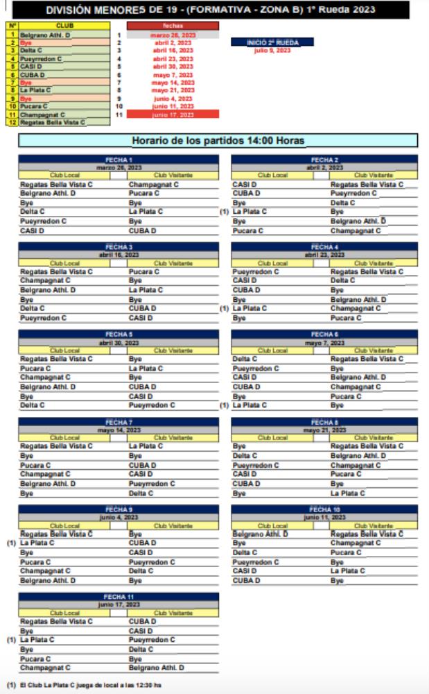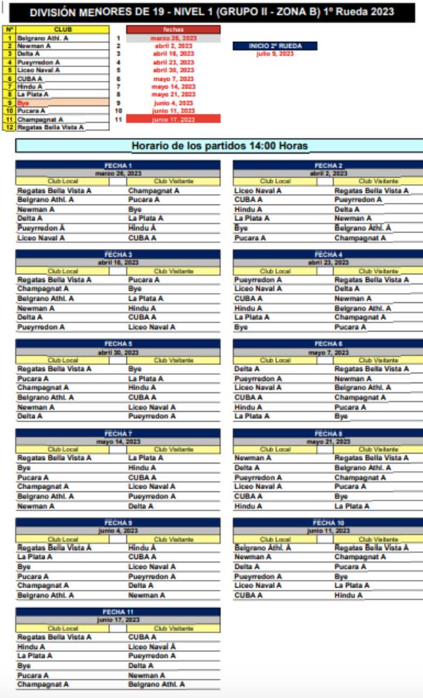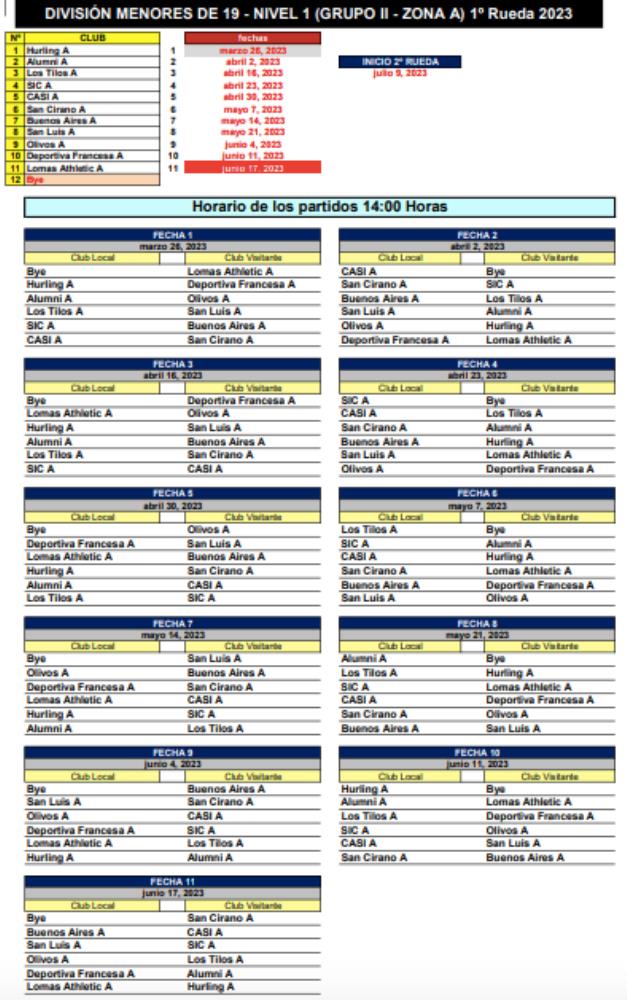 Galería de Imagenes La Unión de Rugby de Buenos Aires dio a conocer las fechas y los partidos para el Torneo de la M19, tanto en Nivel 1, 2 y Formativas. A continuación repasamos como quedaron los fixtures: Galería de Imagenes
