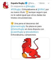 Después del veredicto de la FER, el VRAC alcanzó su décima Liga de Honor y aventaja por uno al Club Deportivo Arquitectura de Madrid. El VRAC sumó el título del 2020 a los conquistados en 1999, 2001, 2012, 2013, 2014, 2015, 2017, 2018 y 2019. El VRAC además, es el actual campeón de la Copa Ibérica y Supercopa.