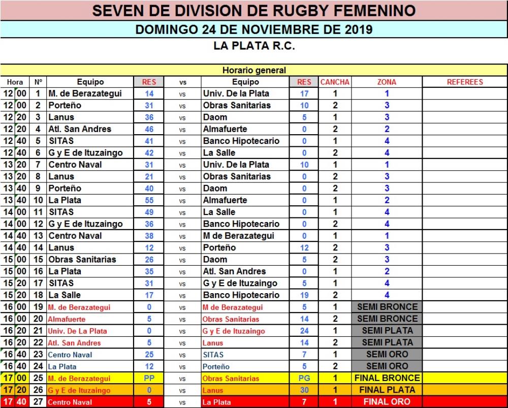 Galería de Imagenes Ayer, domingo 24 de noviembre, se disputó en La Plata RC el Seven del Rugby Femenino de la URBA. El local, La Plata, se quedó con la Copa de Oro, Lanús con la de Plata y Obras con la de Bronce. Además, como parte de las acciones de desarrollo del rugby femenino y con la coordinación del oficial de desarrollo de la Unión, Juan Manuel Algañaraz, se realizó una actividad bajo la modalidad de X-Rugby (5 contra 5 jugadoras) de la que participaron chicas de rugby juvenil de la URBA. Fotógrafo: Archivo Alejandra Krickeberg – Rugby Champagne. Fuente: Gentileza Prensa URBA. Galería de Imagenes