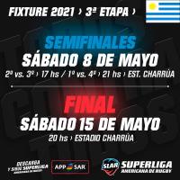 La segunda etapa del torneo se jugará íntegramente en el Estadio Charrúa de Montevideo. Habrá fechas el 11, 16, 21 y 26 de abril, cerrando la fase de clasificación el sábado 1 de mayo. Las semifinales enfrentarán al segundo y tercer equipo tras las diez fechas, y al primero con el cuarto, el sábado 8 de mayo. Los ganadores se enfrentarán entre sí el sábado 15 de mayo, a las 20 horas.