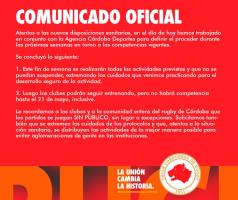 Galería de Imagenes El comunicado emitido aclara que este fin de semana se jugarán los partidos previstos como estaban programados. Luego de una reunión con la Agencia Córdoba Deportes, se determinó que las competencias oficiales de la unión quedarán suspendidas hasta el 21 de mayo, aunque los partidos de este fin de semana se desarrollarán como estaba previsto, y los clubes podrán seguir entrenando pero extremando los cuidados y protocolos sanitarios que se vienen practicando.Mira el comunicado acá : Galería de Imagenes