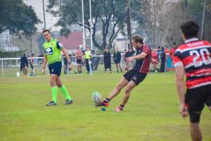 Diez minutos le llevó acomodarse en ataque al “Tricolor” y, sobre los quince, luego de un maul a metros del ingoal, la pelota salió para la entrada del apertura Joaquín Fajardo, que se zambulló y puso el partido igualado 5 a 5. Cuarto try en el torneo para el “histórico diez” de Monte Grande, que cumple su vigésima temporada en Primera.