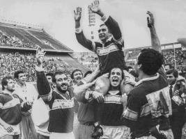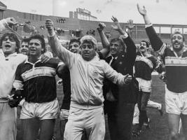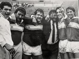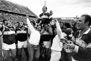 Galería de Imagenes El 14 de julio de 1990, en el estadio de Vélez, el equipo capitaneado por Hugo Porta entró en la historia del rugby argentino al transformarse en el primer y único equipo en el mundo que venció al seleccionado de la Rosa. Repasá las mejores imágenes de los festejos tras la finalización del partido. Fotógrafo: Gentileza - Pilín Pérez, Coco Soto, Pablo Franchi, Fabio Gómez, Claudio Gentile y Rolo Etchegoyen. Archivos de la Revista el Gráfico, Diario la Nación y Diario Clarín Fuente: Federico Lemos - Rugby Champagne Galería de Imagenes