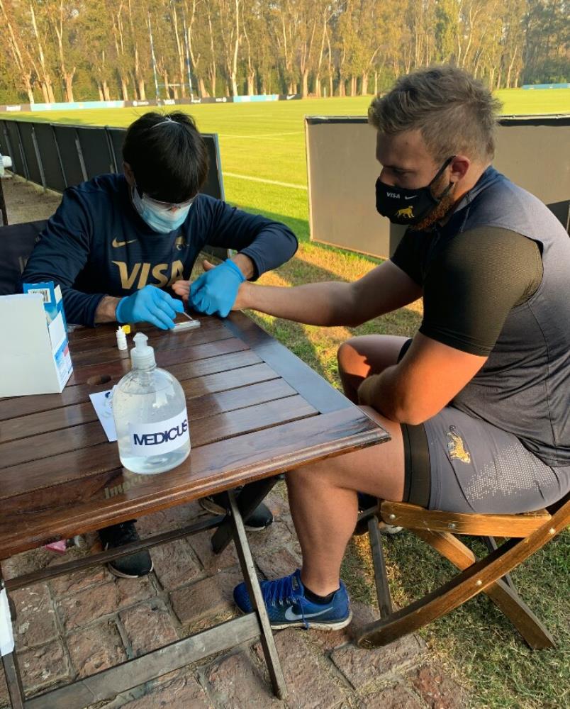 Galería de Imagenes Los 9 jugadores dieron negativo en el test serológico y ya entrenaron. Los grupos estuvieron divididos en tres zonas de trabajo: la cancha, el gimnasio y otro espacio al aire libre. La cuenta oficial de Los Pumas publicó las primeras imágenes del entrenamiento de este jueves del seleccionado argentino en Casa Pumas, en la localidad de Escobar.Previo al inicio de los entrenamientos, cada uno de los jugadores se sometió al test serológico para identificar si tiene anticuerpos que indiquen que tuvo contacto con el COVID-19 y se conoció el resultado al cabo de 15 minutos. Luego se aplicó el protocolo establecido para cada situación particular.Durante la mañana se trabajó con un primer grupo de jugadores y a la tarde con los restantes. Cada turno está dividido en tres sectores: ejercicios de gimnasio, destreza de movimiento y resistencia aeróbica. Los entrenamientos se realizarán de lunes a viernes garantizando de forma estricta las condiciones de higiene, seguridad y distanciamiento. Todos los días en el ingreso se les tomará la temperatura y se les consultará por la presencia de síntomas. Fotógrafo: Twitter oficial de Los Pumas - @lospumas Galería de Imagenes