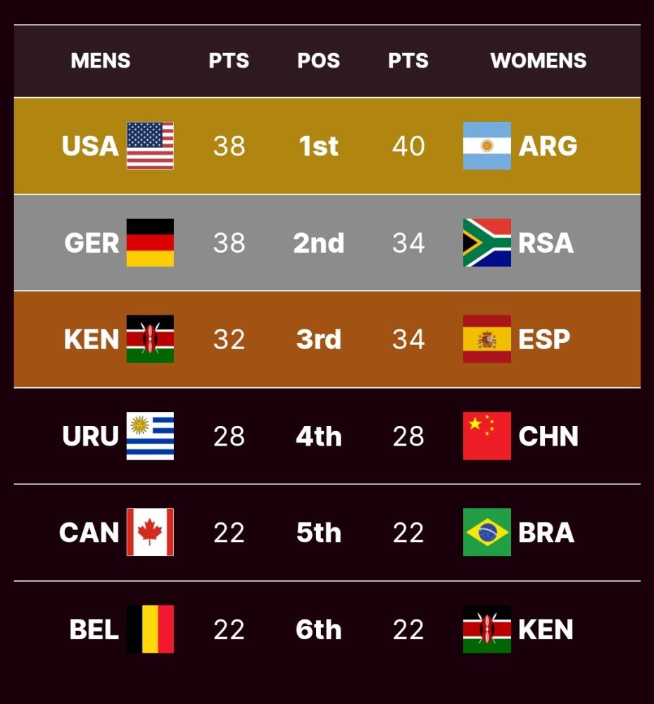 Galería de Imagenes Luego de disputados los circuitos del SVNS 2 de Nairobi y Montevideo así quedaron las posiciones Las tablas de posiciones del Seven femenino del SVNS 2 con la segunda etapa disputada. Resta jugarse la de San Pablo entre el 28 y 29 de Marzo.FEMENINO1- Argentina 40 pts Sudáfrica y España 34ptsChina 28ptsKenia 22ptsBrasil 20ptsLa tabla de posiciones del Seven masculino SVNS 2 con la segunda etapa disputada1- USA Y Alemania 38Kenya 32 Uruguay 28Canadá y Bélgica 22 Fotógrafo: WR Fuente: Rugby CHampagne Galería de Imagenes