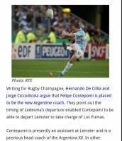 La chance de que el ex apertura se convierta en el Head Coach de Los Pumas repercutió en el mundo luego de la nota publicada en Rugby Champagne.