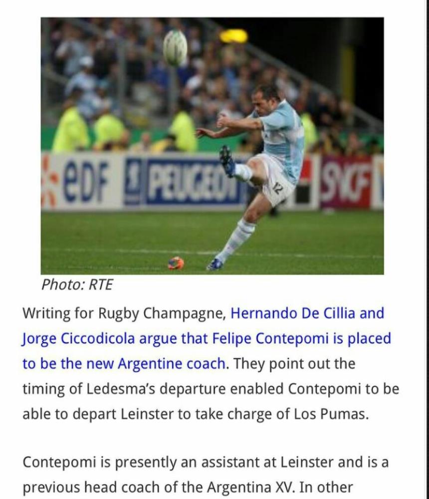 Tal vez fue para que Felipe Contepomi pudiera acomodar sus cosas en Leinster -tiene un contrato firmado- y así poder desvincularse de la mejor forma posible, para poder hacerse cargo de un puesto que anhela desde hace tiempo: ser el de Head Coach de LOS PUMAS.
