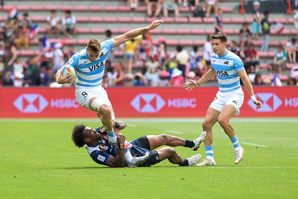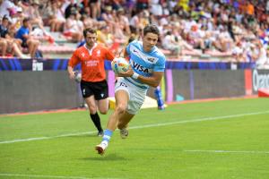 El diferencial claro fue el ingreso de Marcos Moneta, quien marcó un try en la primer pelota que tocó gracias a una gran destreza individual, con patadita "a lo Pelé" incluida, que fue seguido por dos tries más del crack de San Andrés, en lo que fue su tercer hat trick en el circuito mundial de seven.