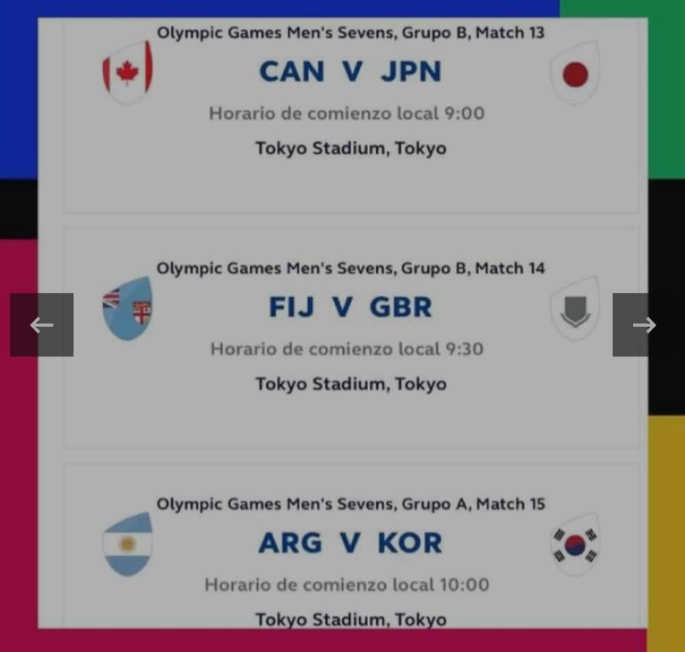 Galería de Imagenes El plantel dirigido por Santiago Gómez Cora ya tiene los días y horarios confirmados para sus partidos durante la próxima cita olímpica. Los Pumas 7s tendrán su debut el domingo 25 de julio a las 22.30 ante Australia, y el segundo encuentro será 7 horas después, el lunes 25 a partir de las 5.30. La segunda jornada para el conjunto nacional se iniciará ese mismo lunes a las 22 ante corea del Sur, partido que marcará el cierre del Grupo A. El fixture de los Pumas 7s para los Juegos Olímpicos de Tokio: Fotógrafo: Comité Olímpico Internacional Fuente: Prensa UAR Galería de Imagenes