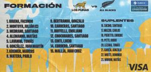 Galería de Imagenes El Head Coach del equipo, Mario Ledesma, anunció el equipo para enfrentar a Nueva Zelanda este sábado y anunció las bajas de Bautista Delguy, Matías Orlando y Jerónimo De La Fuente por el resto del Rugby Championship. Bautista Delguy sufrió un desgarro en el isquiotibial derecho. El jugador formado en Pucará, Jerónimo de la Fuente y Matías Orlando no estarán disponibles para lo que resta del Rugby Chanpionship y dejarán la concentración Puma para continuar recuperándose en sus clubes.El centro rosarino presentó un desgarro en el aductor izquierdo mientras que Orlando arrastró una pubalgia desde el comienzo de la gira por Oceanía y no pudo estar en el primer partido con los All Blacks.Con respecto al equipo, Santiago Carreras será el apertura y Pablo Matera ocupará su lugar en la tercera línea pero como octavo. Lucio Cinti y Santiago Chocobares estarán en el centro de la cancha.Emiliano Boffelli estará como wing desde el arranque y Juan Martín González será titular en el pack de forwards. Domingo Miotti y Gonzalo García estarán estarán en el banco de suplentes como pareja de medios de recambio:Acá te dejamos la formación completa: Fotógrafo: Prensa UAR Galería de Imagenes