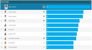Luego siguen los sudafricanos Siya Kolisi y Malcom Marx. En el puesto número 8 está el otro argentino, Juan Martín González, uno de los mejores jugadores del equipo en todo el torneo, que además de su gran participación en ataque, tambiñen fue una pieza importante en defensa realizando 54 tackles.