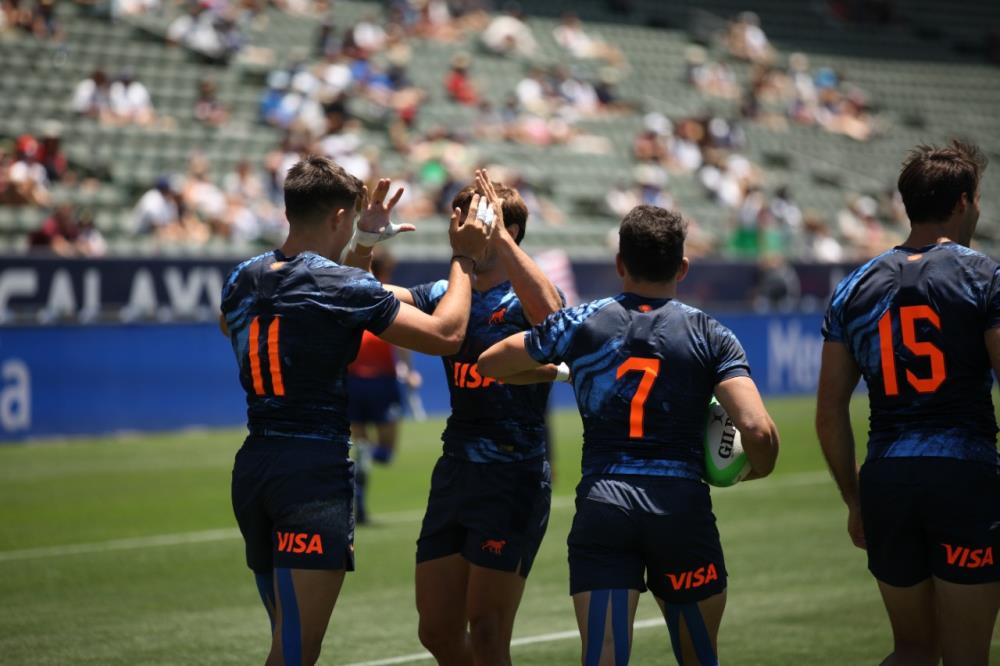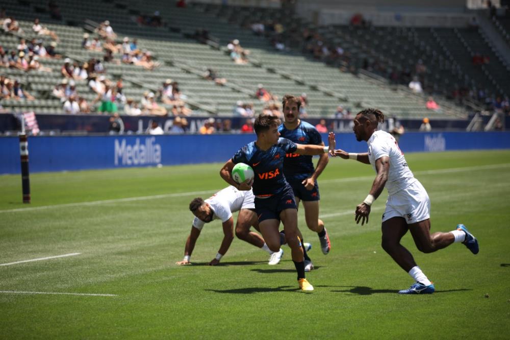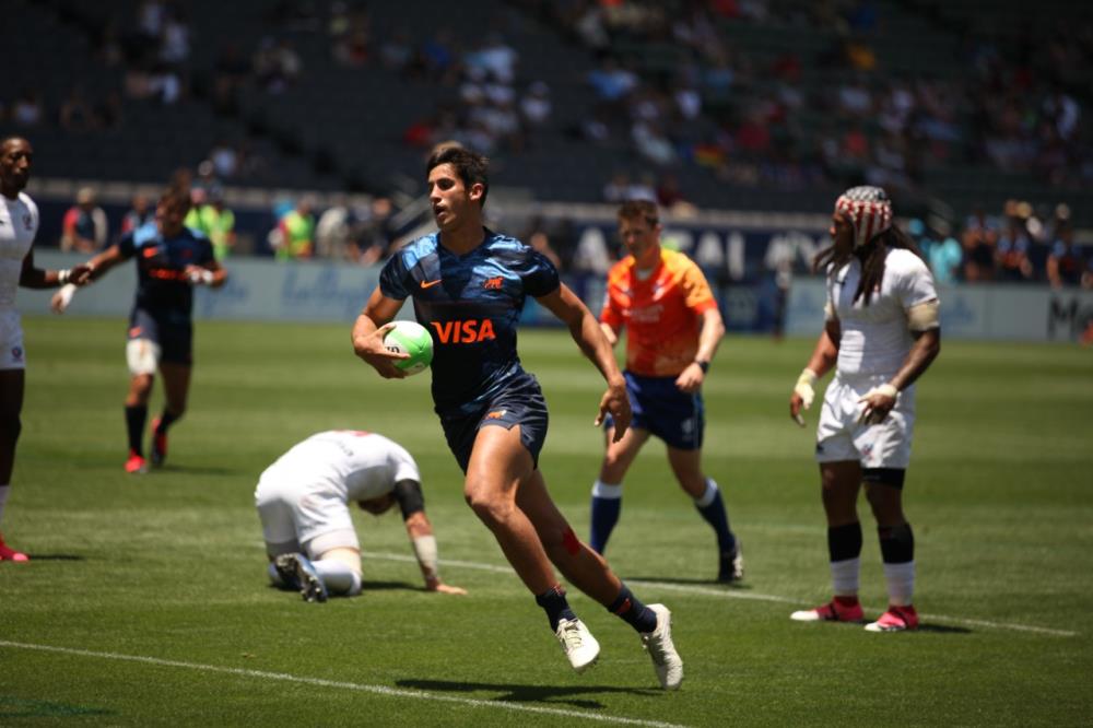 Galería de Imagenes Los derrotaron por 31 a 19 con un parcial de 19 a 7 y demostraron un juego atildado y vistoso. Muy firmes en la defensa y con un equilibrio en todos sus jugadores el elenco dirigido por Santiago Gómez Cora obtuvo un nuevo triunfo en el seven de Los Ängeles – el cuarto en fila- y ahora esperara por su próximo compromiso a partir de las 20.10 ante Corea. Los tries del elenco argentino fueron apoyados por Rodrigo Isgro, Santiago Álvarez Fourcade y Lucio Cinti en el primer tiempo y luego completaron en la segunda parte MarcosMoneta y Luciano González Rizzoni. Fotógrafo: Matías Acebo - Rugby Champagne Galería de Imagenes