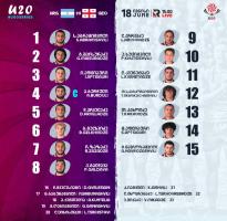 Argentina: 1 Nicolás Toth 2 Ignacio Ruiz 3 Joaquín Blangetti 4 Pedro Rubiolo 5 Lucio Anconetani 6 Joaquín Moro 7 Jerónimo Gómez Vara (Capitán) 8 Joaquín Oviedo 9 Facundo Villalba 10 Ramiro Waisberg 11 Iñaki Delguy 12 Juan Cruz Corso Rodríguez 13 Justo Piccardo 14 Francisco Pisani Caride 15 Santiago Vera Feld