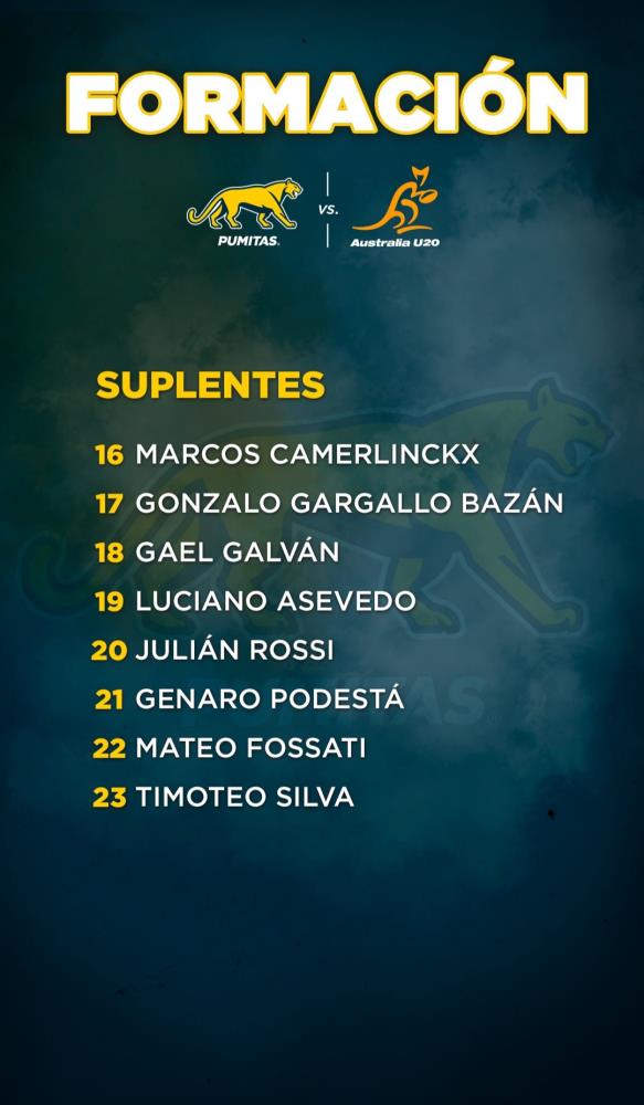 El Rugby Championship M20 dará inicio este jueves 2 de mayo en el Sunshine Coast Stadium de Queensland, Australia, y Los Pumitas confirmaron su alineación para el debut ante los locales (desde las 6:00 horas de nuestro país)