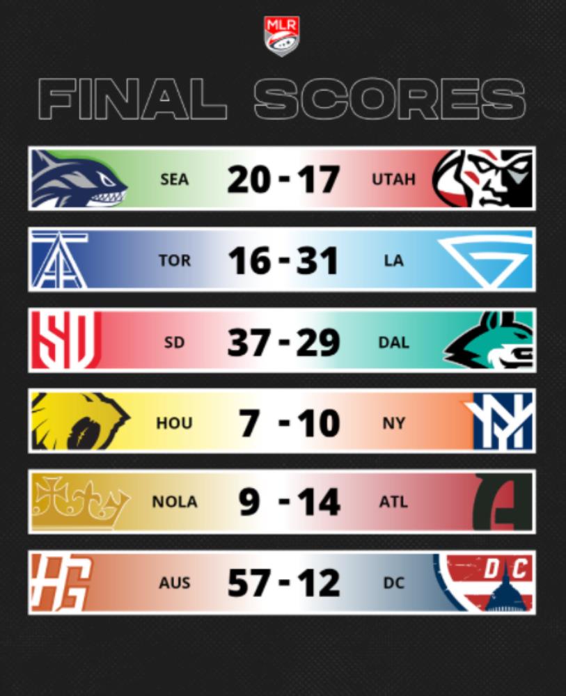 NOLA, Toronto Arrows, Old Glory DC, Utah y Dallas son los cinco equipos que no pudieron ganar en estas primeras dos fechas y que por esa misma razón se encuentran en el fondo de las tablas de posiciones de la MLR.