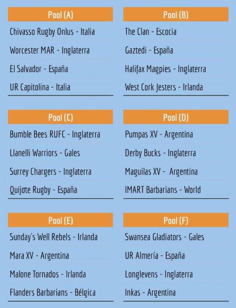 Los Pumpas XV, defensores del título en la segunda edición, participará por tercera vez bajo el formato Mixed Ability donde se presentan 7 u 8 jugadores con discapacidad y similar cantidad de facilitadores como guías acompañantes. Pumpas intentará la clasificación en la Zona D, frente a los ingleses de Derby Bucks, los Barbarians y sus compatriotas de Maguilas XV.